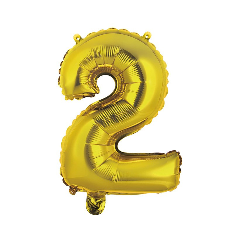 Levegővel fújható 2-es arany szám fólia lufi. A csomag tartalmazza a fújáshoz a pálcát.