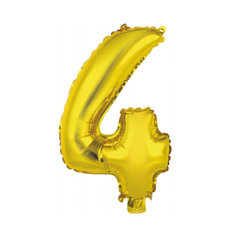 Levegővel fújható 4-es arany szám fólia lufi. A csomag tartalmazza a fújáshoz a pálcát.