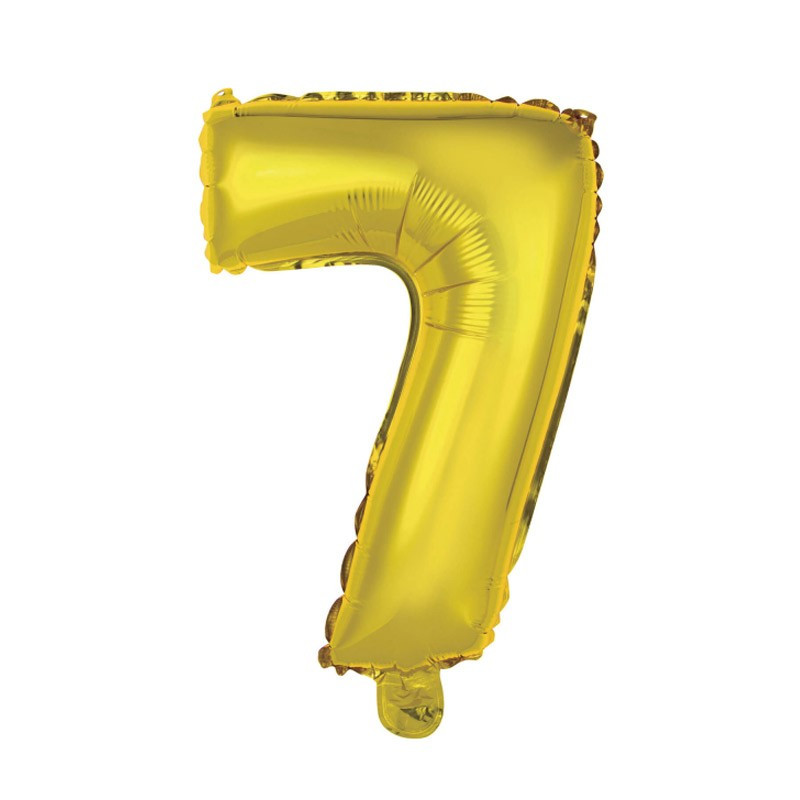 Levegővel fújható 7-es arany szám fólia lufi. A csomag tartalmazza a fújáshoz a pálcát.