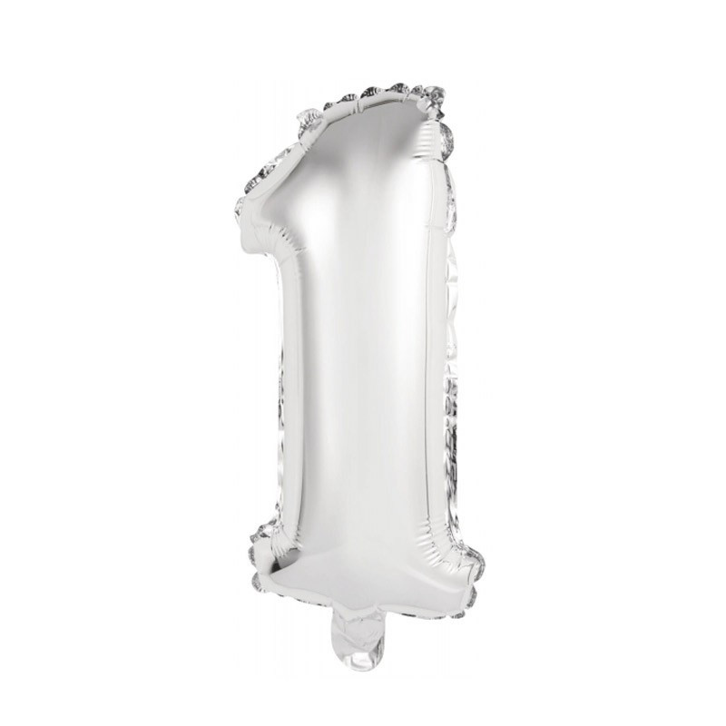 Levegővel fújható 1-es ezüst szám fólia lufi. A csomag tartalmazza a fújáshoz a pálcát.