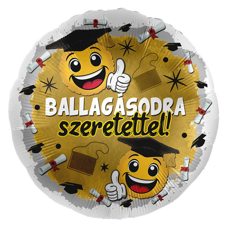 Smile fej mintás ballagási fólia lufi, Ballagásodra szeretettel felirattal.