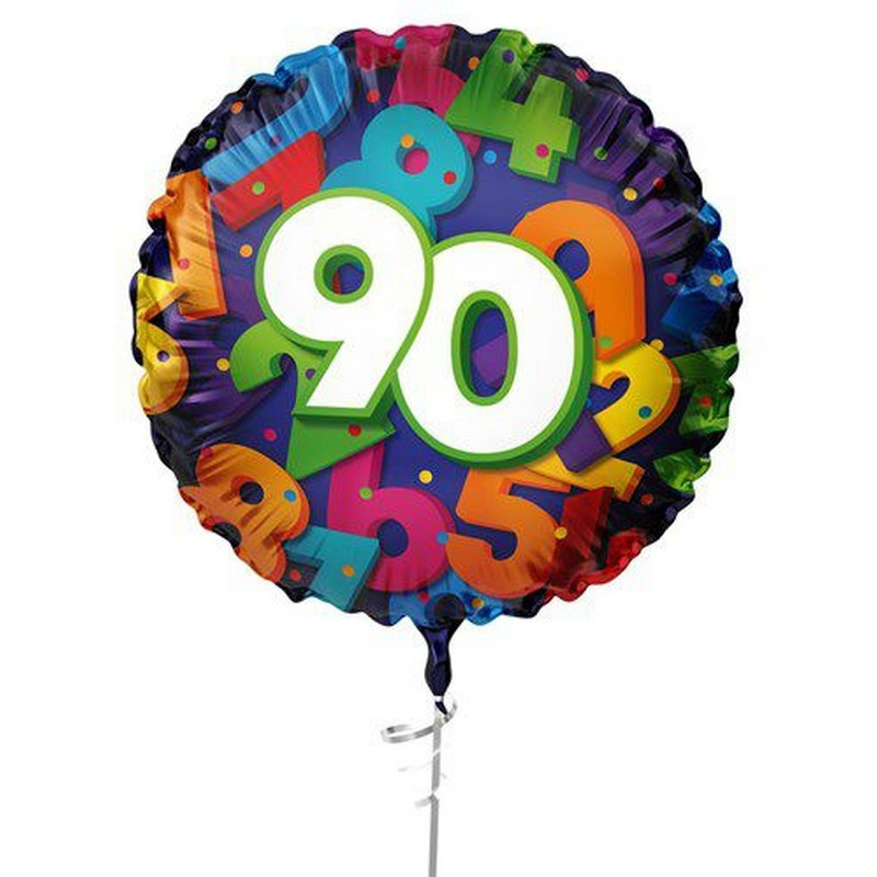 Vidám, színes számos lufi 90. születésnapra.