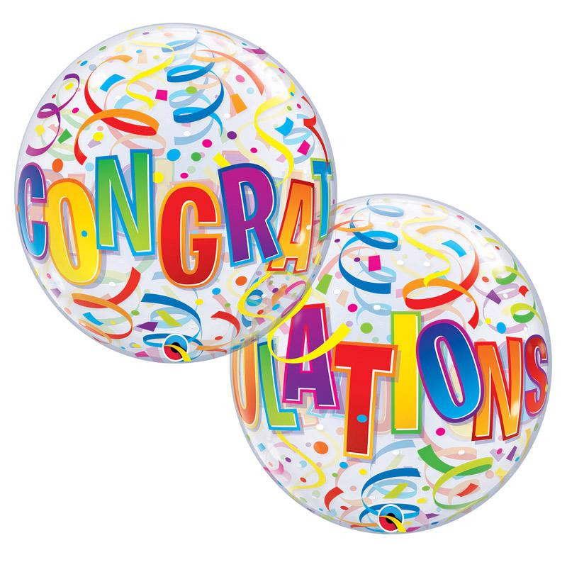 Szerpentin mintás Bubble lufi Congratulations felirattal.