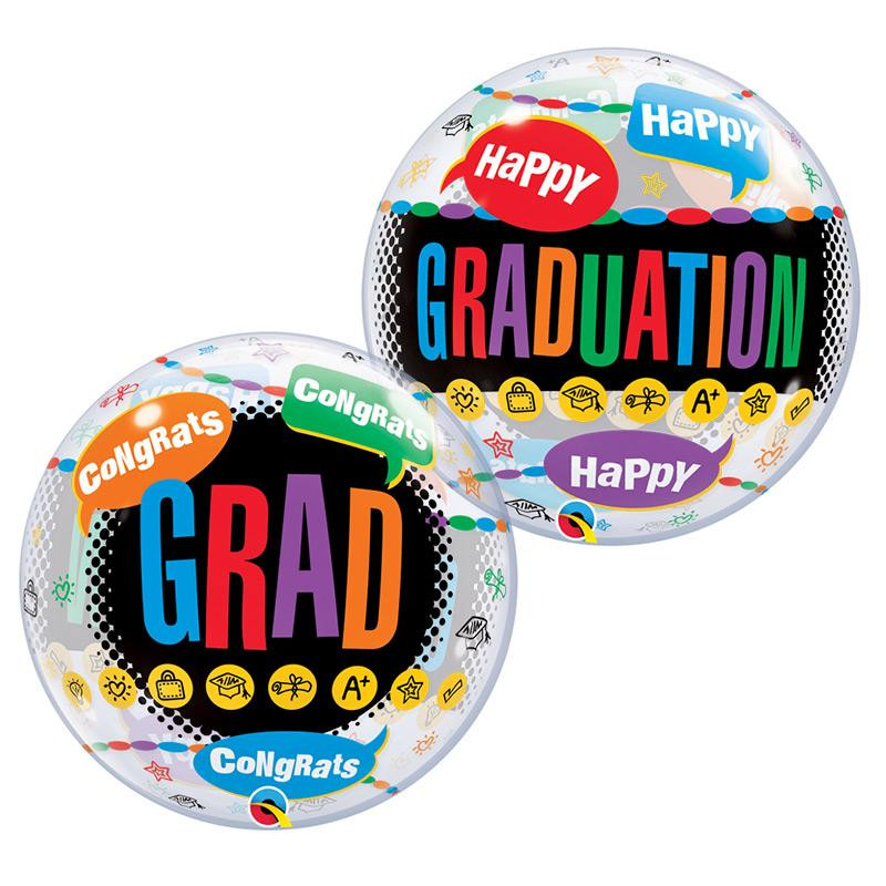 Két oldalas Bubble lufi Happy Gratulations, Congrats Grad felirattal.