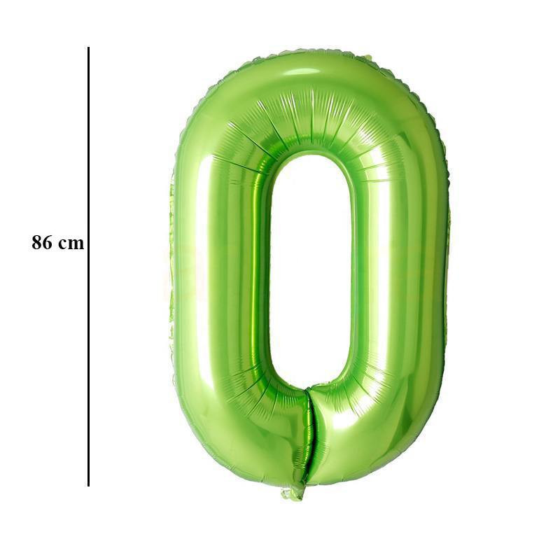 86 cm magas 0-ás, zöld színű nagy szám fólia lufi.