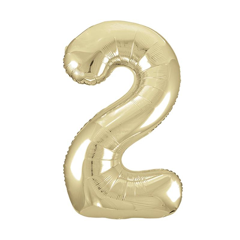 86 cm magas 2-es, arany színű nagy szám fólia lufi.