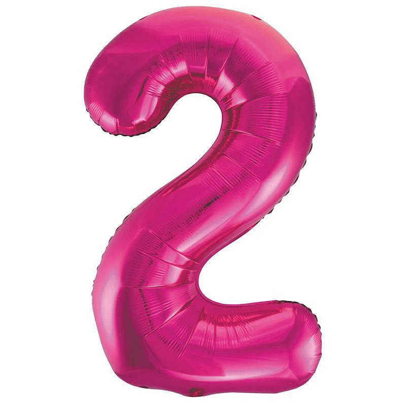 86 cm magas 2-es, rózsaszín színű nagy szám fólia lufi.