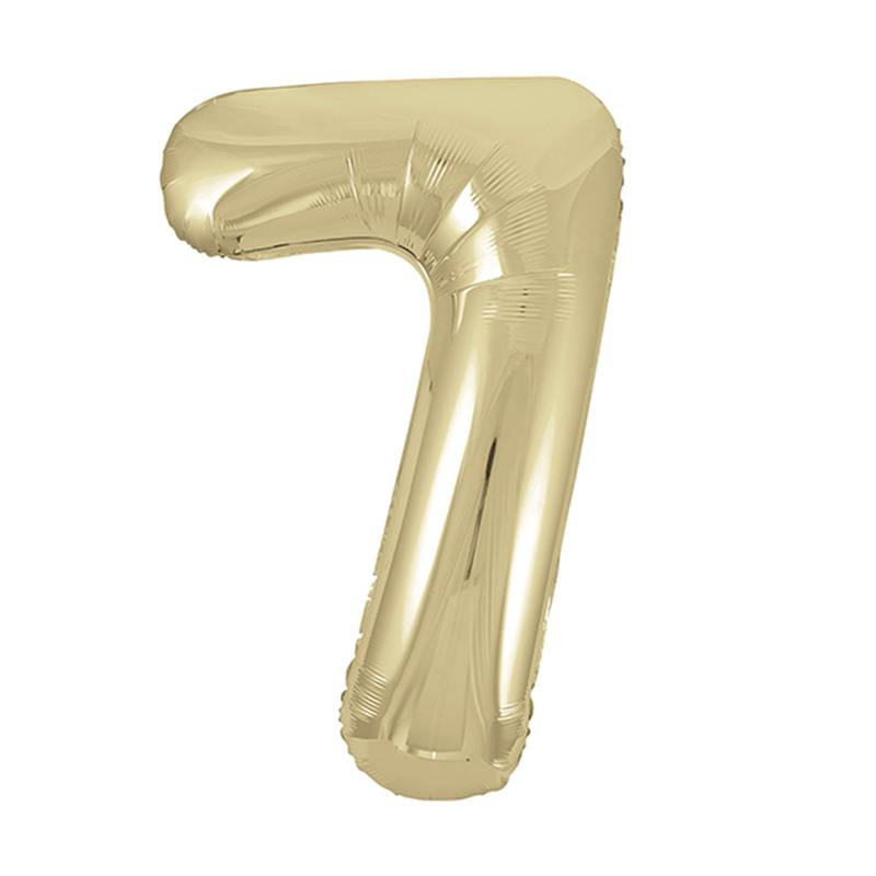 86 cm magas 7-es, arany színű nagy szám fólia lufi.