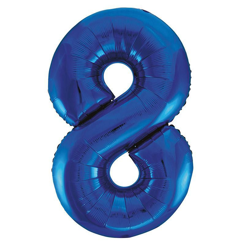 86 cm magas 8-as, kék színű nagy szám fólia lufi.