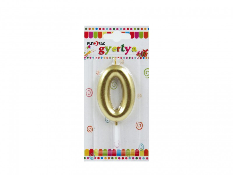 Arany színű szülinapi tortagyertya, 0-ás.