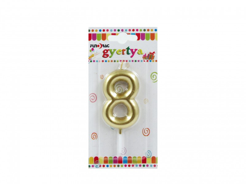 Arany színű szülinapi tortagyertya, 8-as.