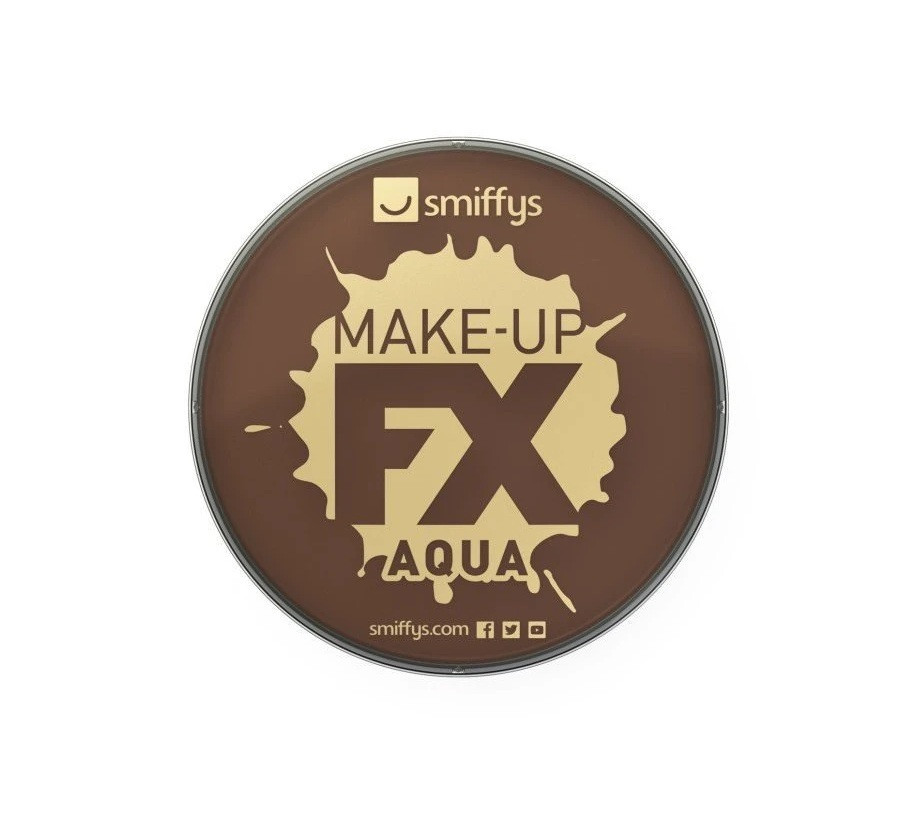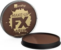 Sötét barna vízbázisú arcfesték tégelyben.