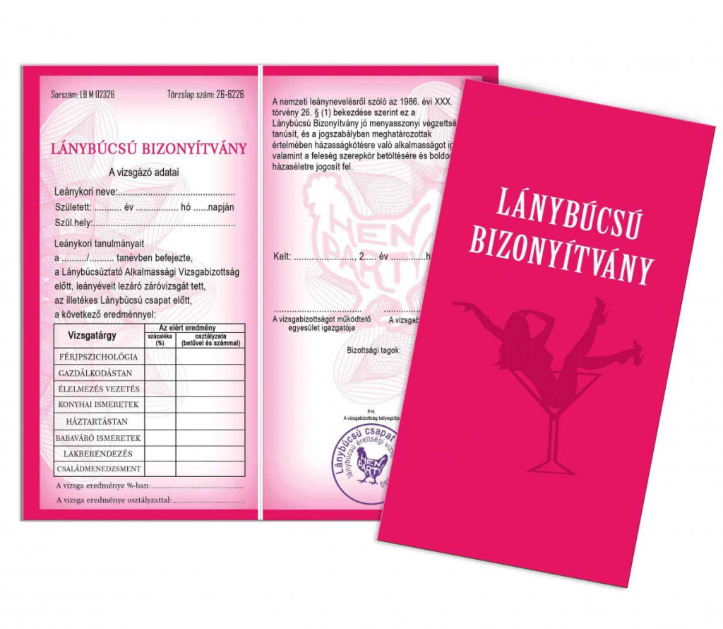 Bizonyítvány - Lánybúcsú bizonyítvány