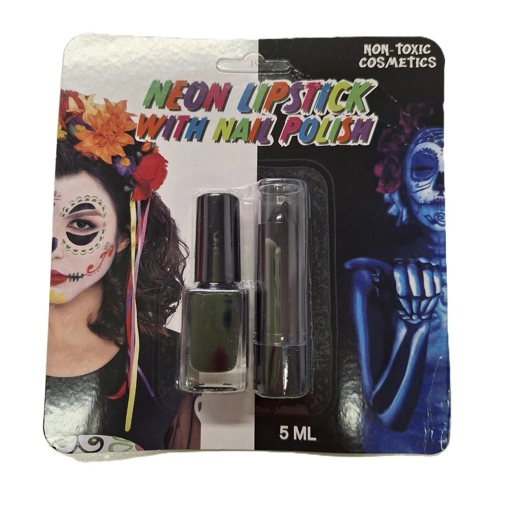 Fluoreszkáló rúzs + körömlakk, fekete vagy zöld