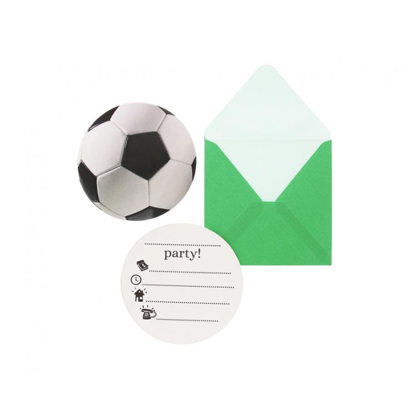 Foci labda alakú parti meghívó, 6 db-os csomagban, 6 db zöld borítékkal.