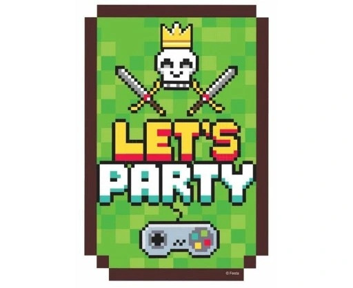 Videójátékos parti meghívó, 6 db-os csomagban, 6 db borítékkal.