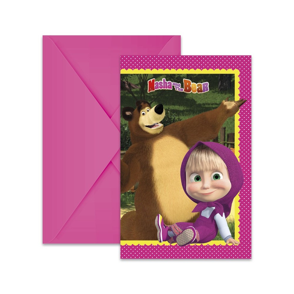 Mása és a medve parti meghívó, 6 db-os csomagban, 6 db borítékkal.