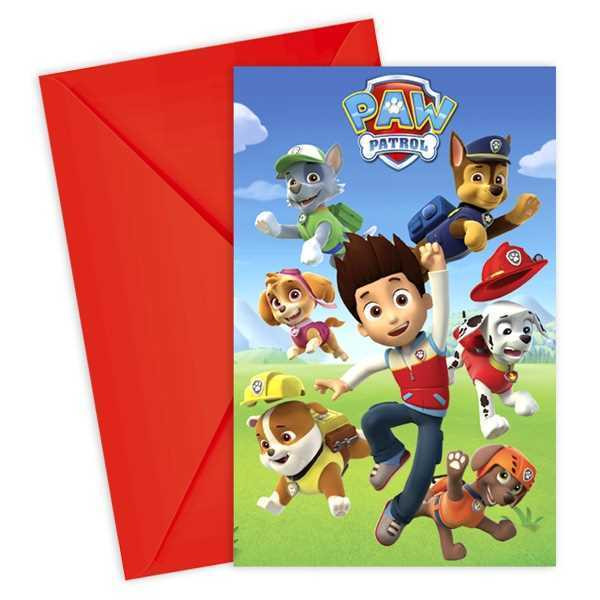 Mancs őrjárat, Paw patrol figurákat ábrázoló parti meghívó, 6 db-os csomagban, 6 db piros borítékkal.