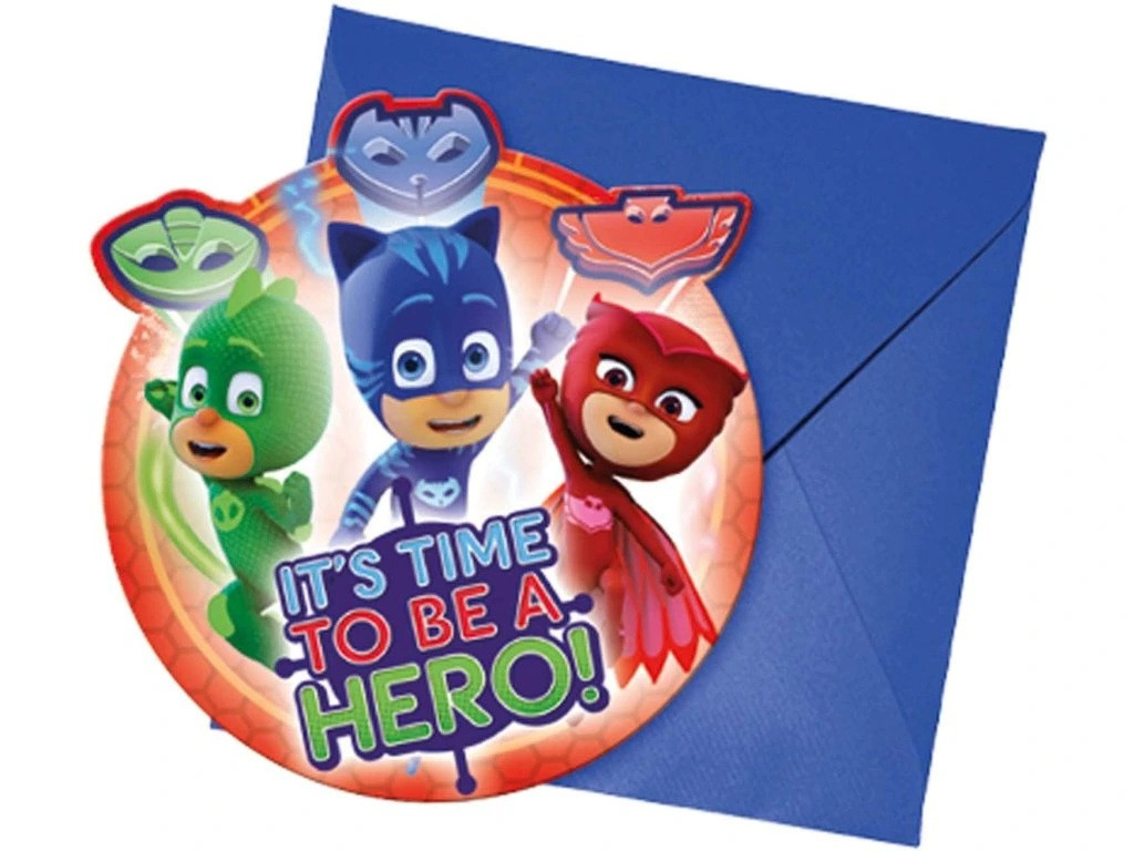 Pizsihősök meghívó, 6 db-os csomagban, 6 db kék borítékkal.