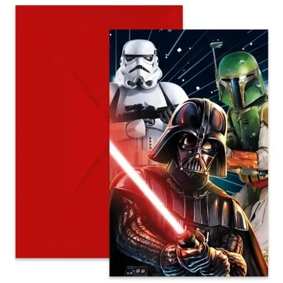 Star wars karaktereket ábrázoló parti meghívó, 6 db-os csomagban, 6 db borítékkal.