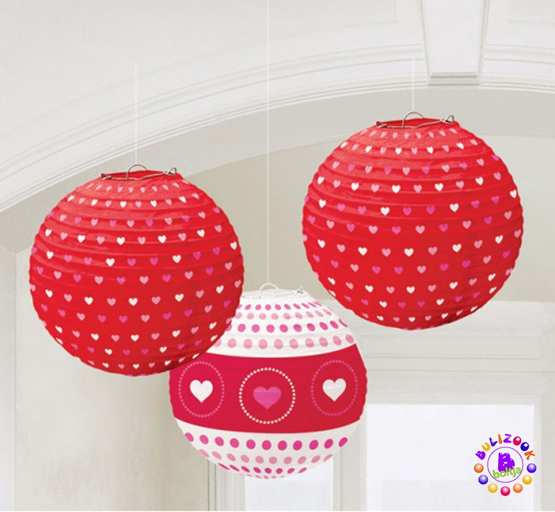 Szív mintás papír lampion. A csomagban 3 db lampion van, két féle mintával.
